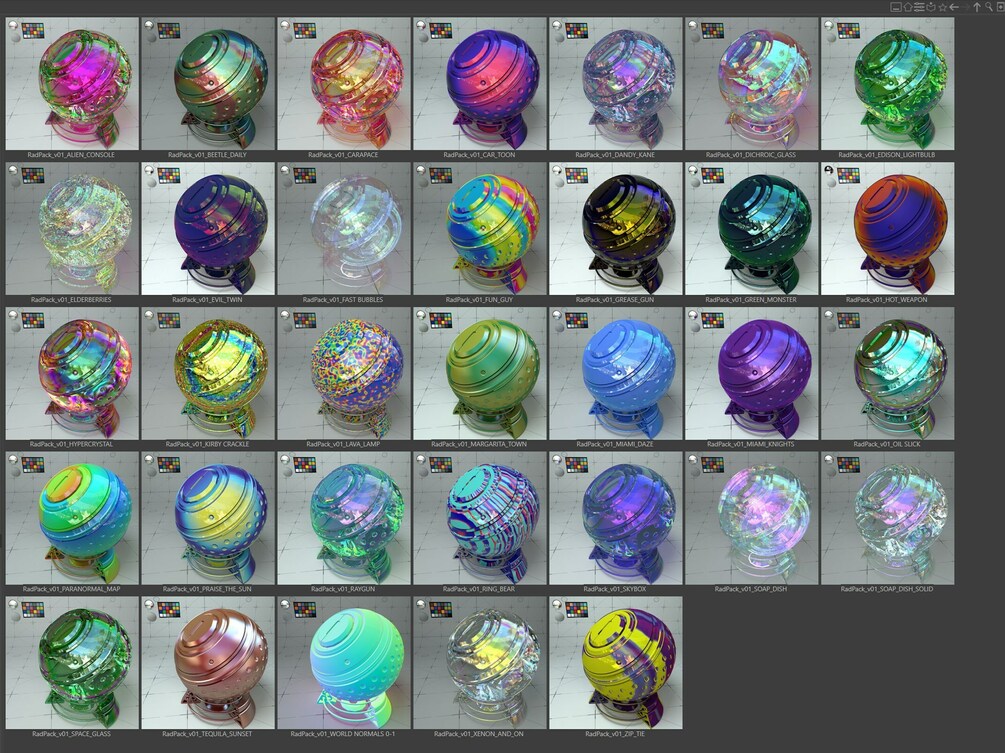 Hand-crafted shaders fresh from the heart of Brooklyn, this is Rad Scientist's most rad science, with 4 models of iridescence ranging from "none" to "I have no idea what I'm doing". This opalescent opulence of iridescence includes: